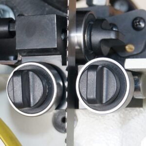 • Miter gauge with aluminum crosscut fence included, hinged doors and easily accessible blade tension knob, for fast blade changes and adjustments