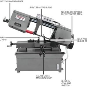 • Wheel size: 14 in., wheel speeds two: 436 and 909 RPM, blade speeds two: 1575 and 3280 lin. Fpm, blade width: 1/8 in. – 3/4 in., blade length: 100-3/4 in.