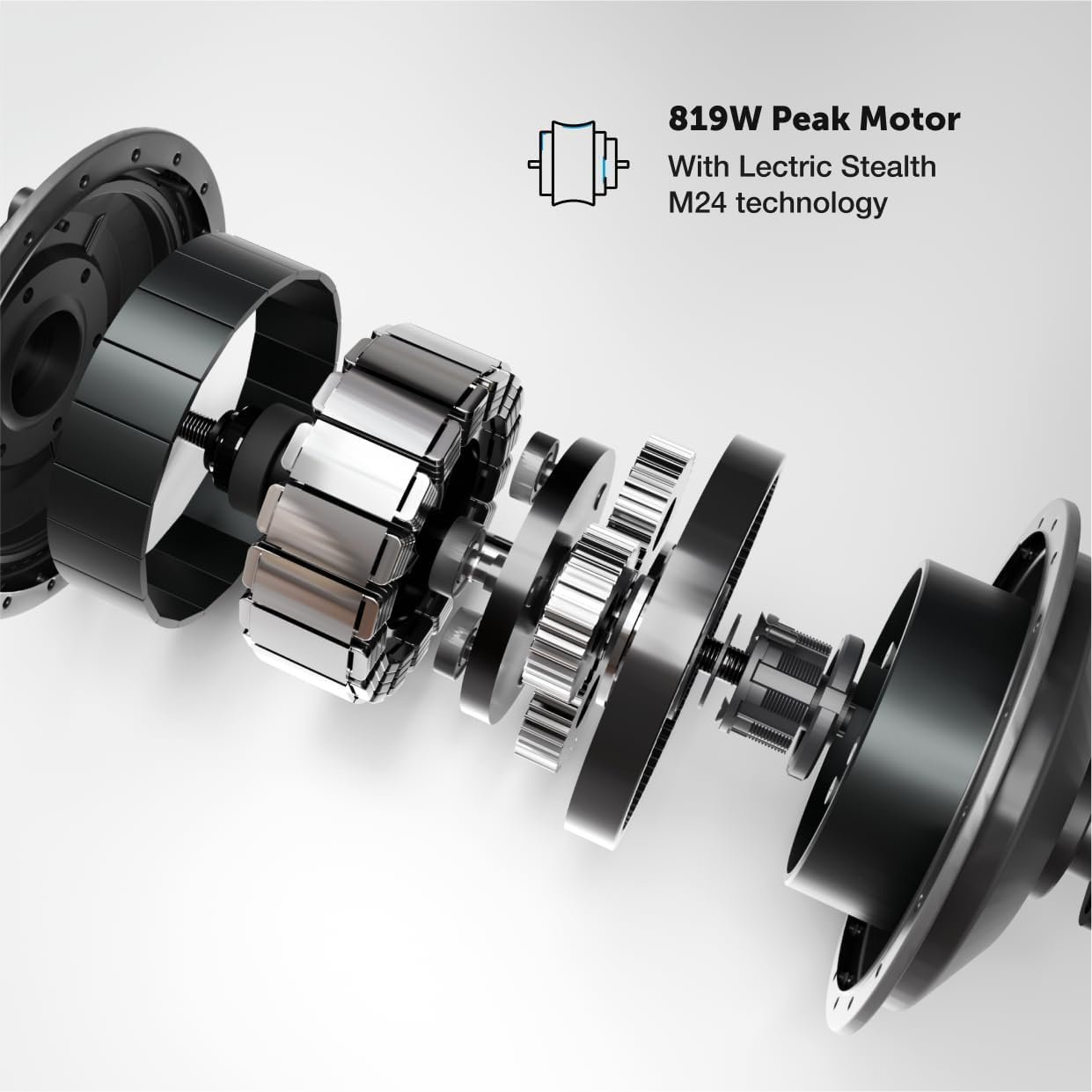 - Motor: 819W peak rear hub motor combined with our Stealth M24 technology delivers a quiet motor that’s built for the long haul.