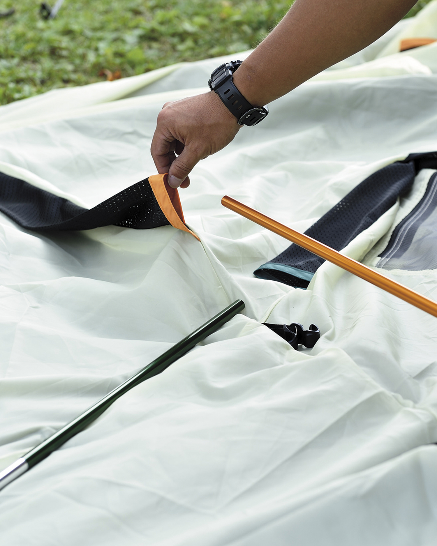 - Materials: Fly Sheet: 75D Polyester, PU Coating 1,800mm, Teflon Water Repellent, UV Cut Processing, Inner Tent: 68D Polyester, Bottom: 210D Polyester Taffeta, PU Coating 1,800mm, Frame: Duralumin