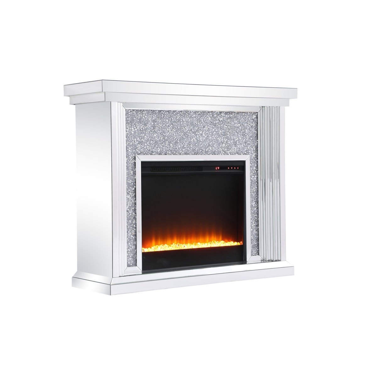 - Mirrored mantle with clear crystals electric fireplace